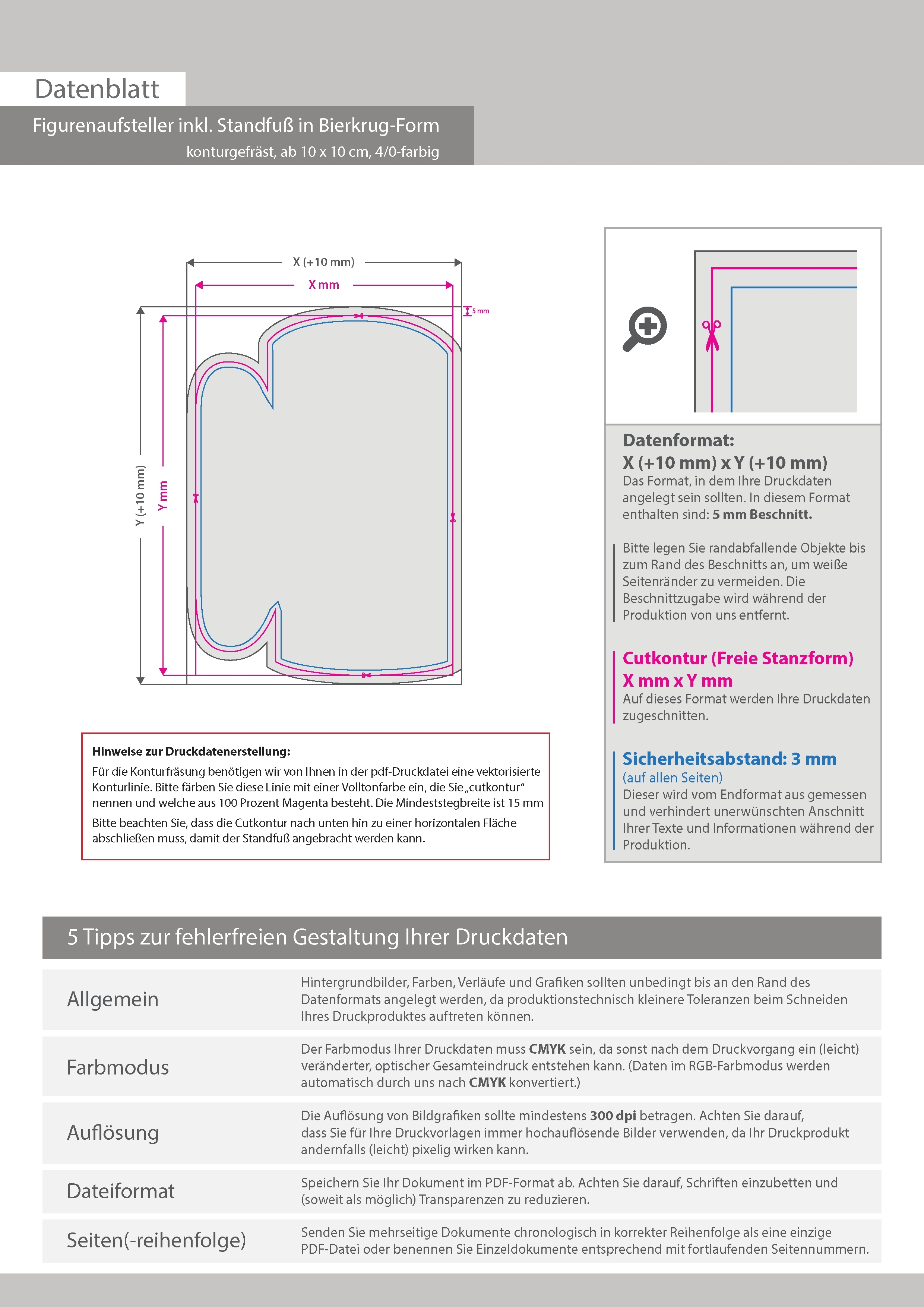 Figurenaufsteller inkl. Standfuß in Bierkrug-Form konturgefräst, ab 10 x 10 cm, einseitig 4/0-farbig bedruckt